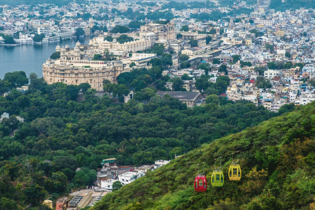 The ropeway ride offers spectacular aerial views of Udaipur, making it a memorable experience for visitors.